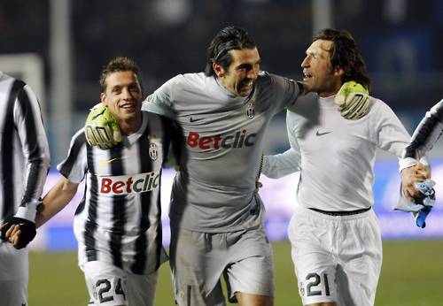 | Giaccherini, Buffon e Pirlo comemoram mais uma vitória da Juventus no Calcio |